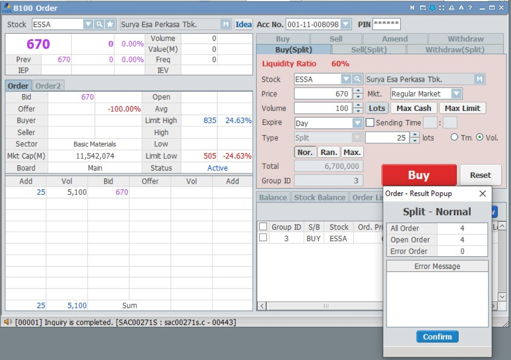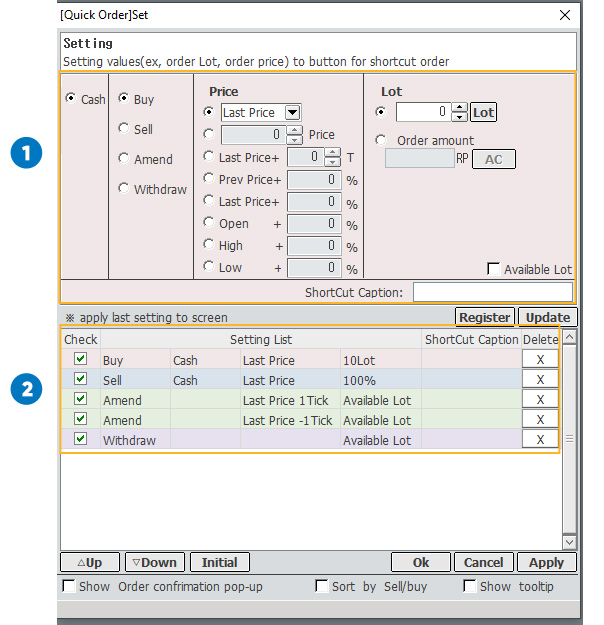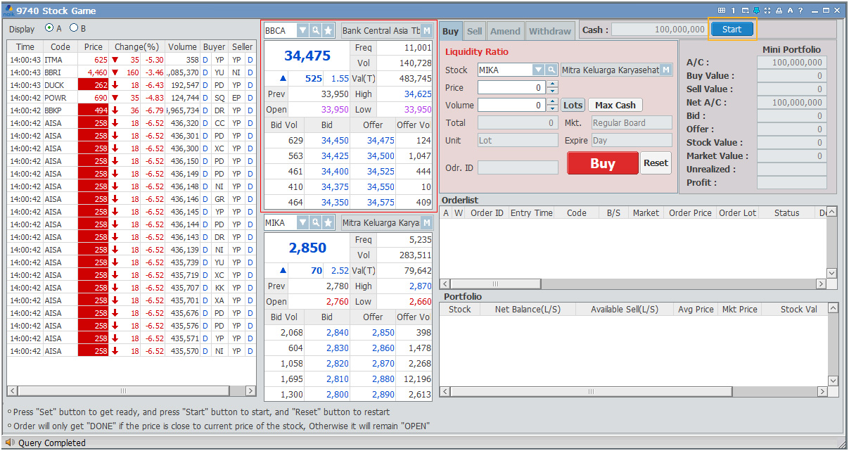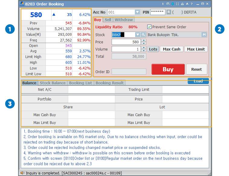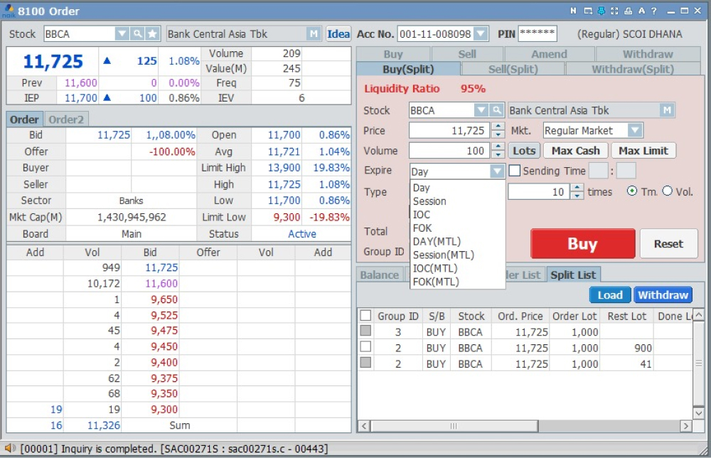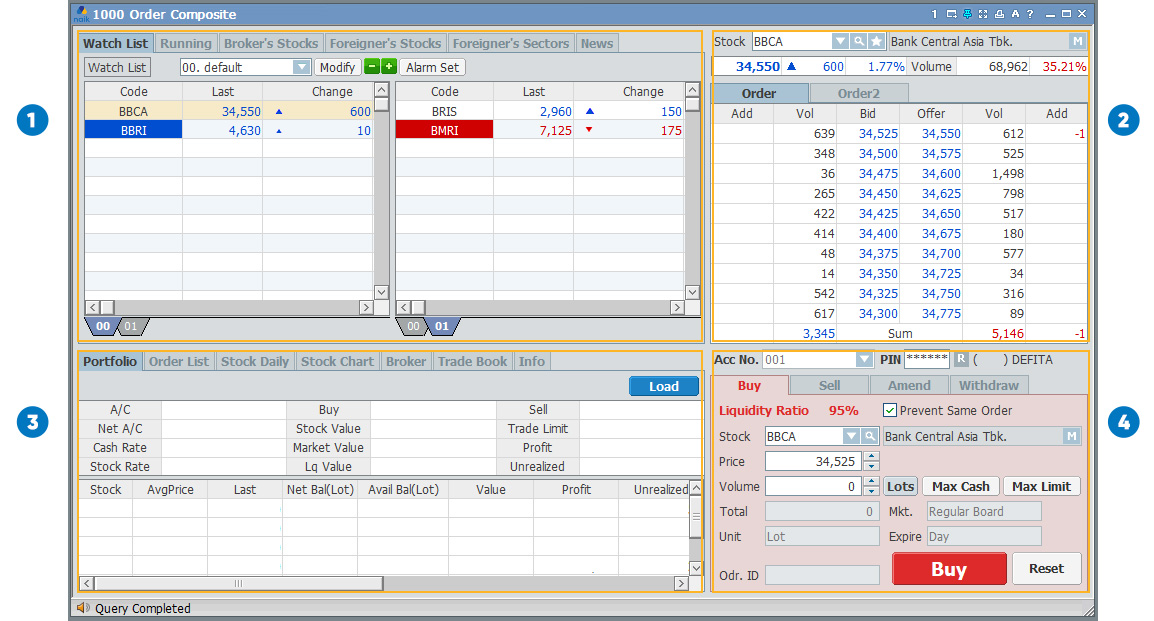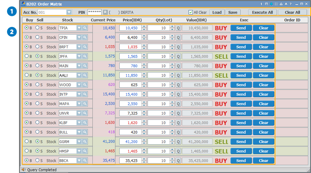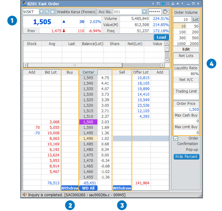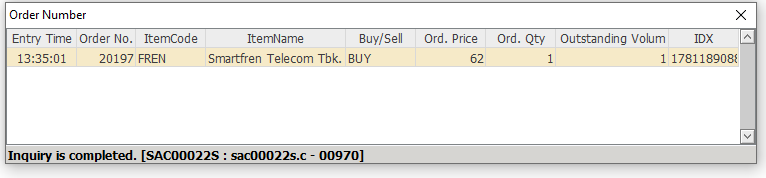 - FOK (Fill or Kill): an order with the condition that when placing an order, the entire quantity with until the price can be traded only, and if it is not possible to do so, the entire order quantity is canceled.