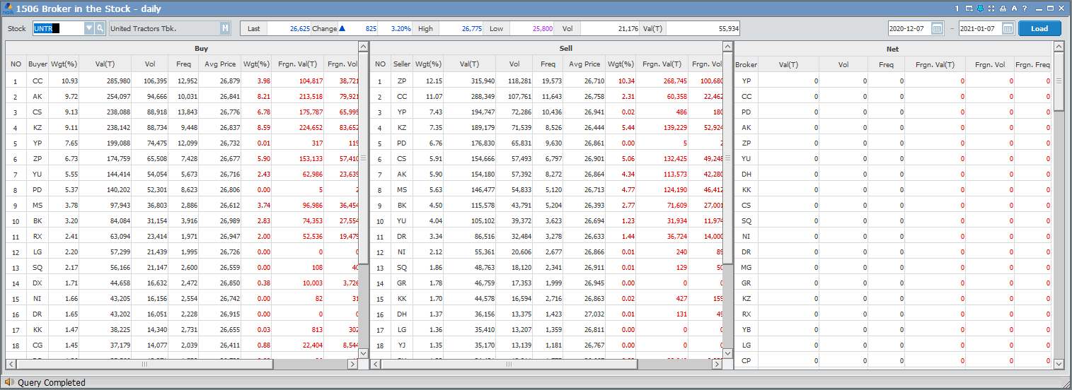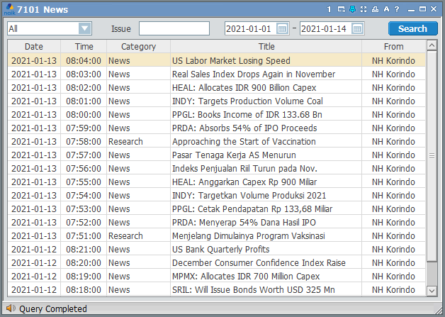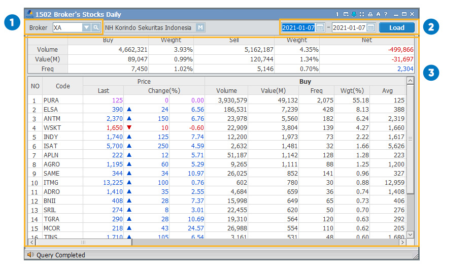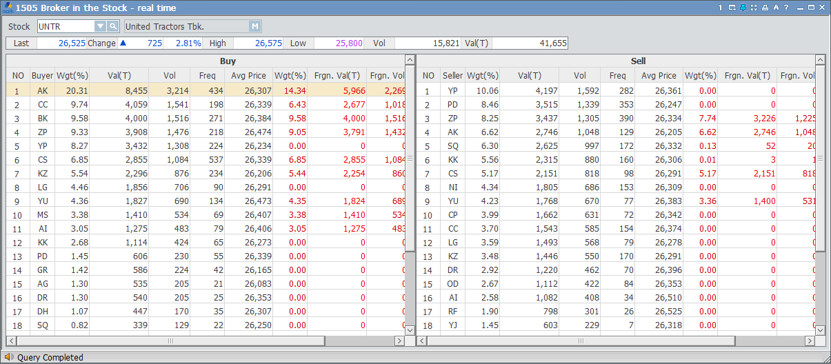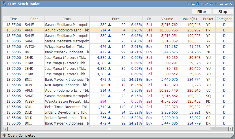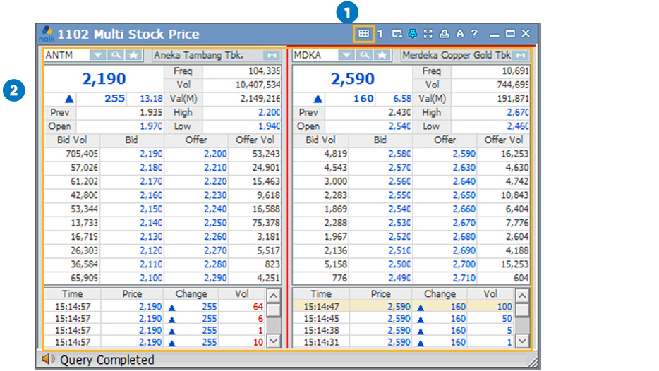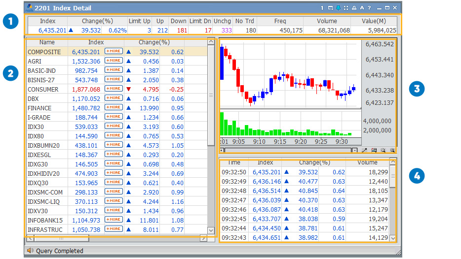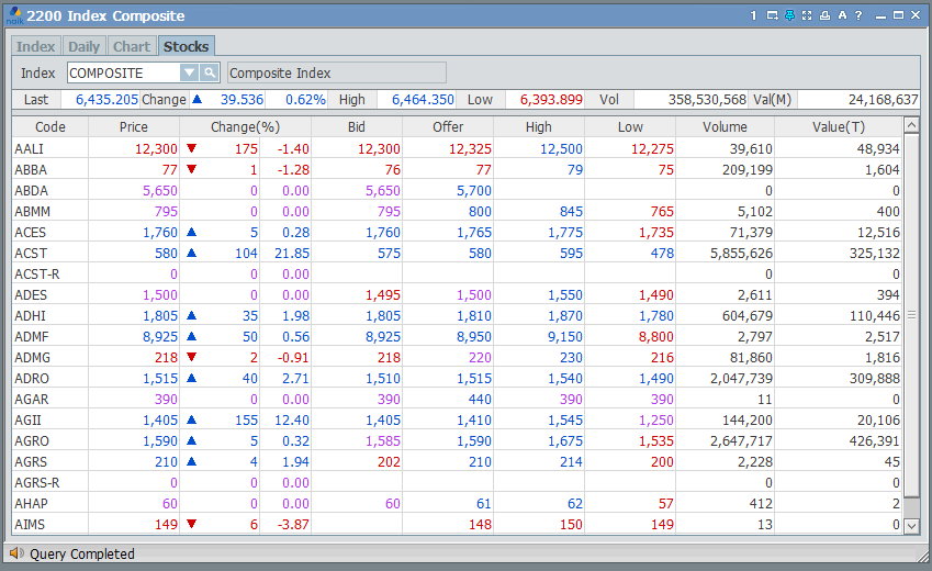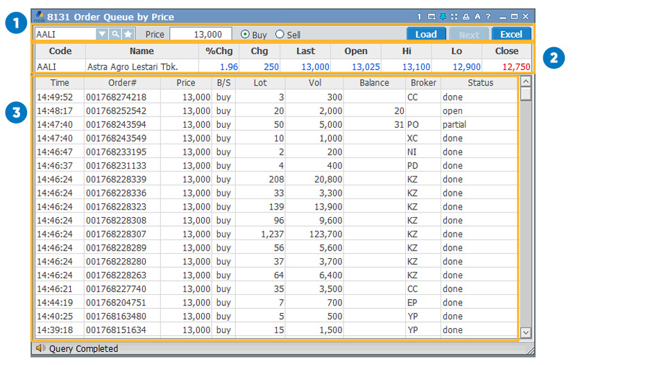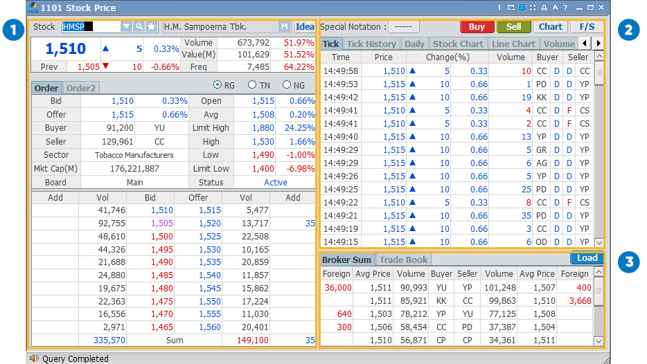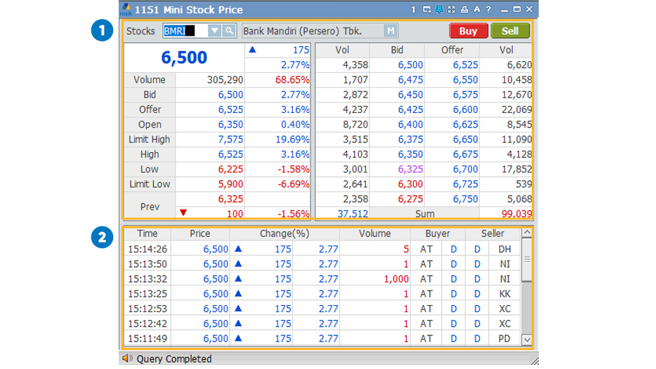 In this section you can find out the details of the price of a share in detail and the latest. The information you can get is in the form of Bid / Offer prices, trading volume, trading frequency, and others.