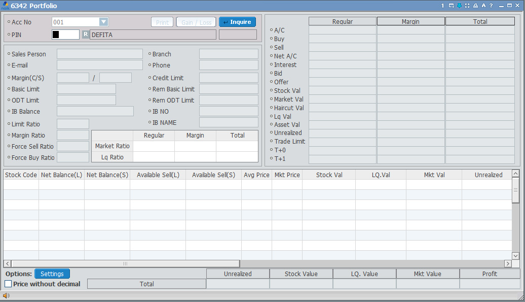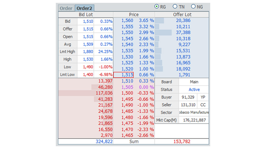 If you select the menu tab Order2, it will display a different version of Bid / Offer. 10 share prices will be displayed with the transaction volume and the percentage increase / decrease.