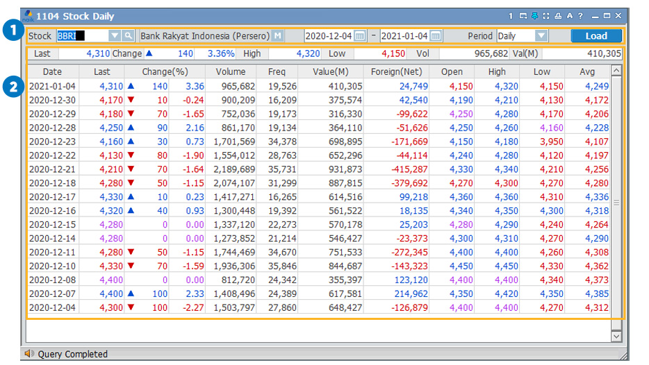 to select the time period you want then click the Load button. The current share price, increase and decrease percentage, High and Low price, and trading volume are displayed.Share prices, percentage increase and decrease, High and Low prices, trading volume, trading frequency, trading value, average value (Avg), and opening price will be displayed according to the desired date.