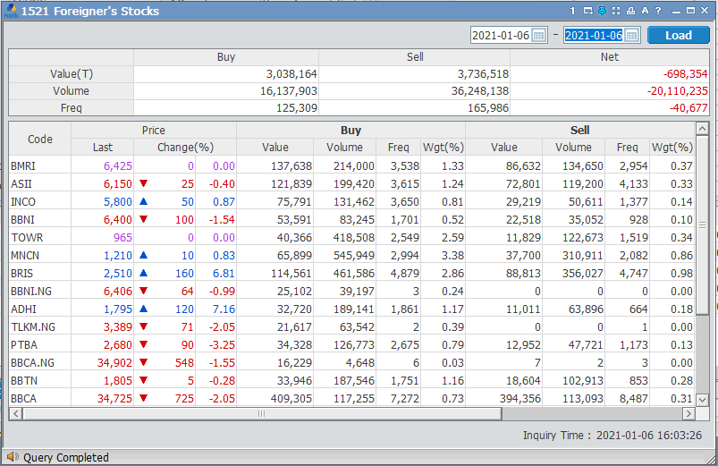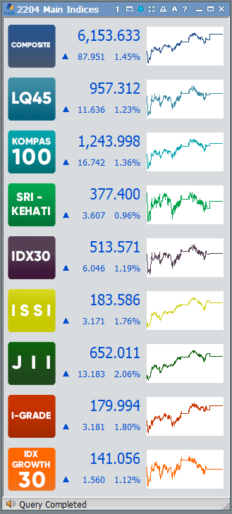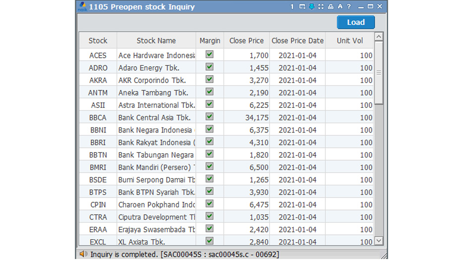 This feature is useful for knowing the opening price of shares included in the LQ45 index before trading hours session I.