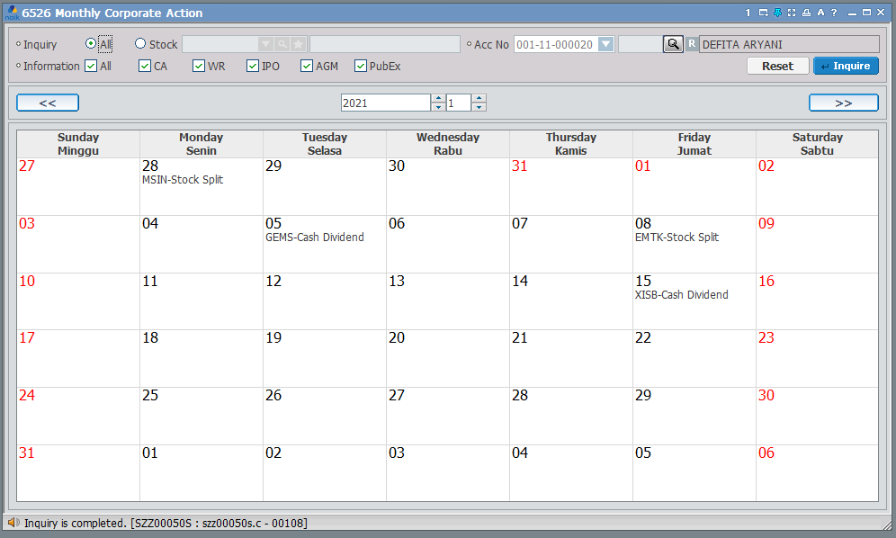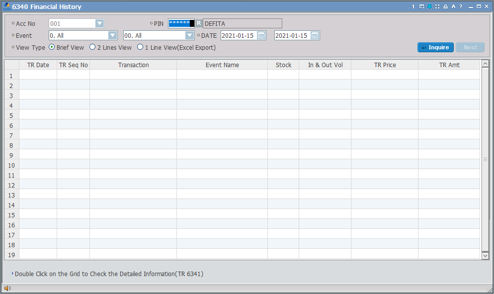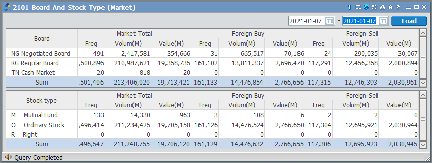 Shows details of trade transactions based on the secondary market (regular market, cash market, and negotiable market). These details are the accumulation of domestic and foreign trade transactions.