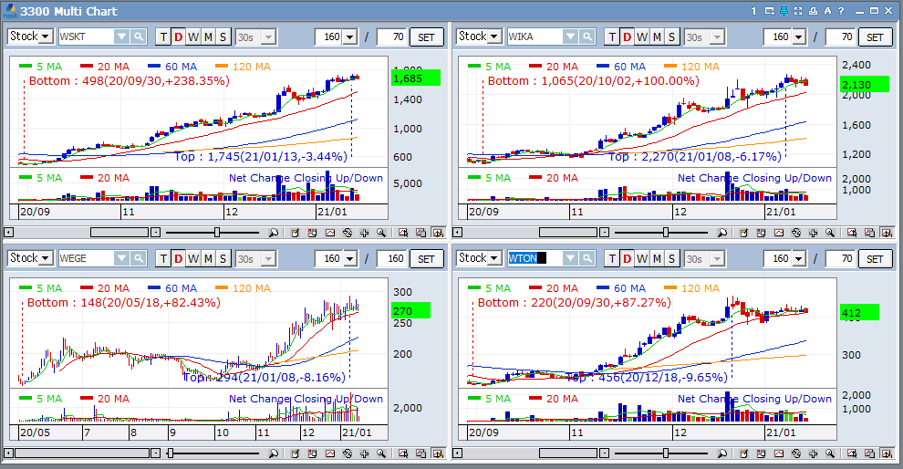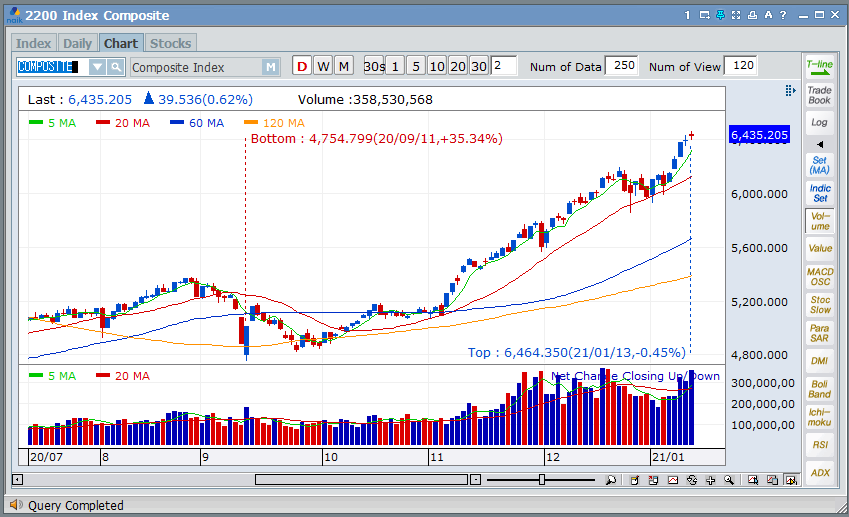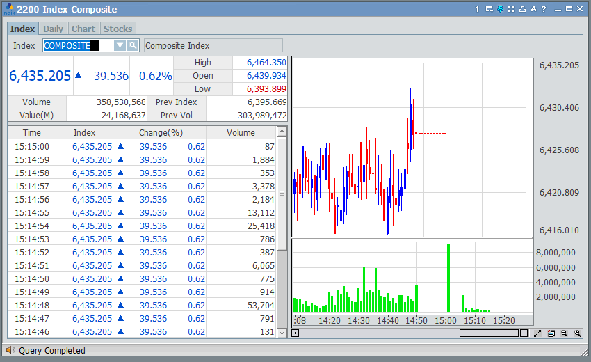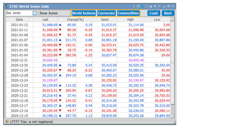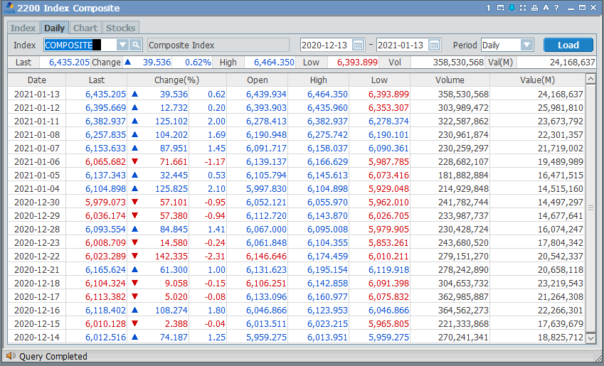 By selecting the Index or sector to be searched for, you can search for the stock price of items consisting of index, daily price, charts and each sector on this screen.