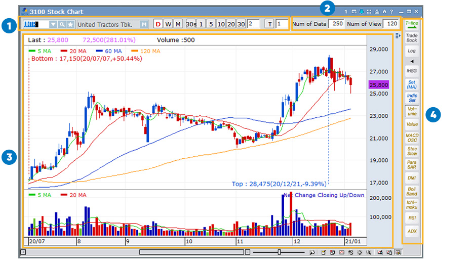 There are also Special Notation, Buy, Sell, Chart, and F / S buttons. Special notation contains symbols for companies that are not in good condition. The Buy button is when you want to buy the stock, while the Sell button is when you want to sell the stock. The Chart button displays a chart of stock movements according to the time range you choose. And the F / S button is the company's financial statement.