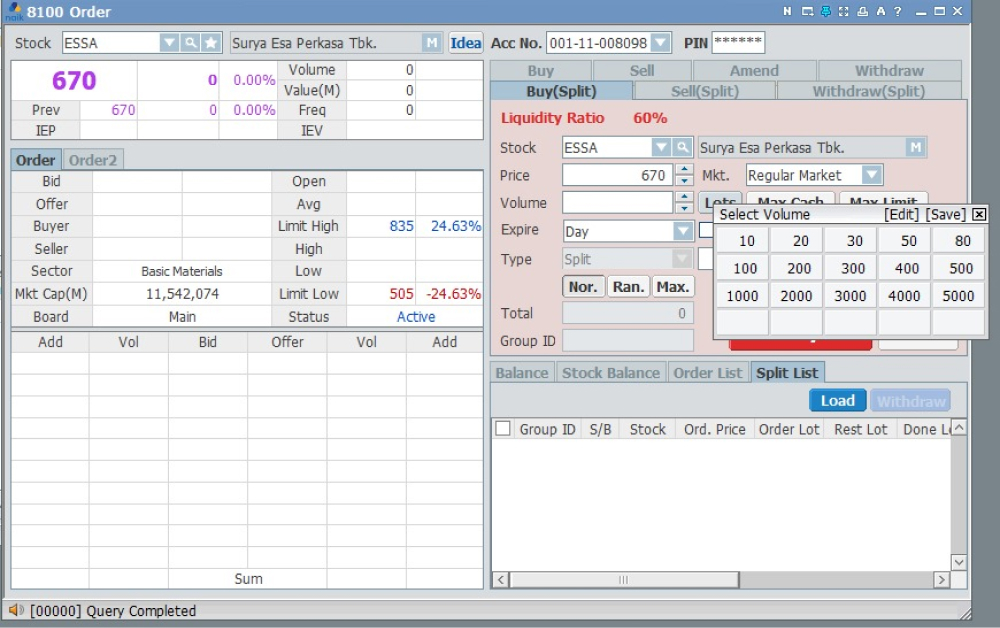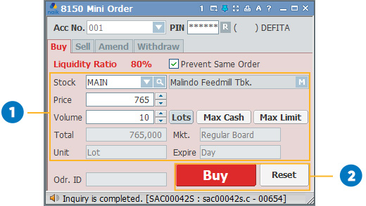 - Input the stock volume to be amended or you can choose the volume option by clicking the lots button