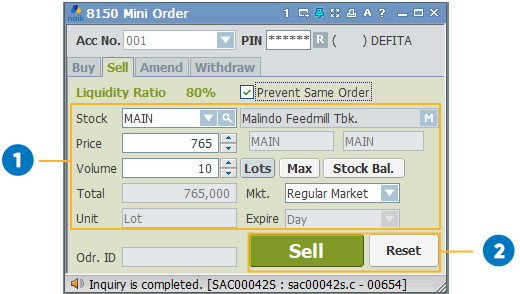 - Input volume to sell or you can choose the volume option by clicking the lots button