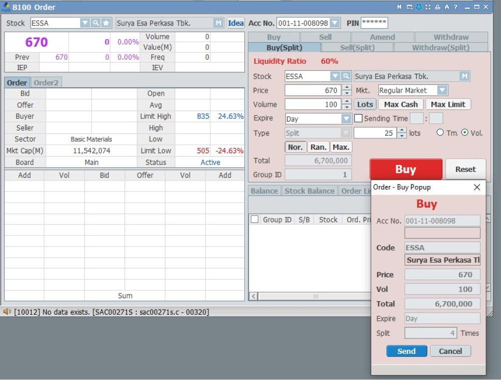 - After the buy popup appears, re-check the order summary. Then click send to continue